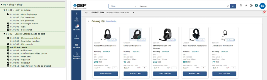 P2P, Sourcing, SRM, Reporting, ... testialustamme sisältää monia toimintoja kaikille GEP-moduuleille , jotka kattavat: