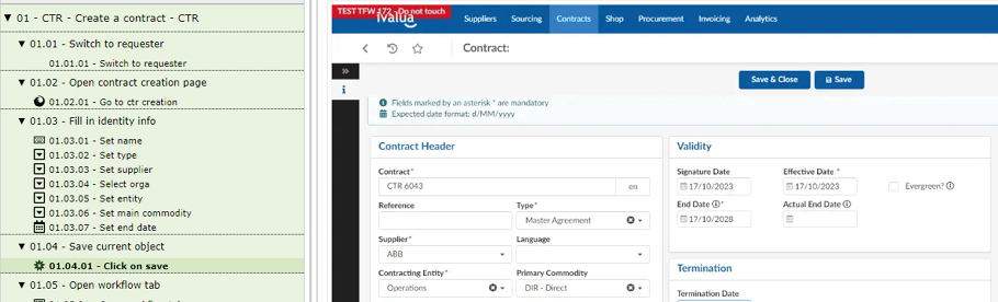 | Työnkulut: usein lukuisia ja monimutkaisia, validointityönkulkuja on yleensä vaikea testata, koska niihin liittyy useita pelaajia ja ne voivat tuottaa monia erilaisia tilanteita. Testausalustamme mahdollistaa kaikkien näiden toimijoiden ja heidän eri toimintojensa simuloinnin. | |
